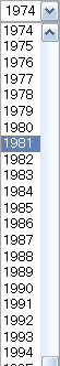 本当は「1975」を選択したかったのに、「1974」や「1973」になってしまい、またボタンを押して選択し直さないといけない。。。かなり面倒。