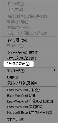 任意のWebページを表示させた状態で、メニューから[表示]-[ソースの表示]を実行するか、マウスの右ボタンをクリックして表示されるショートカット・メニューの[ソースの表示]メニューを実行すれば、現在ブラウザに表示されているページのHTML形式のソースを表示させることができる。(レンダリングエンジンがTrident搭載ブラウザ、Slepnir、Internet explorer、Lunaspaceなどで使用可能)