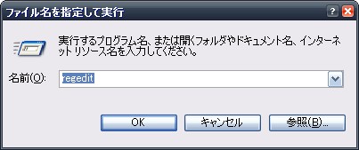 レジストリ・エディタを起動する。[スタート]メニューの[ファイル名を指定して実行]を実行し、表示されるダイアログで“regedit”と入力して[OK]ボタンをクリックする。